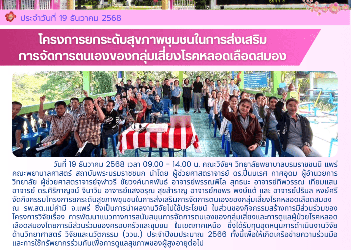 โครงการยกระดับสุขภาพชุมชนในการส่งเสริมการจัดการตนเองของกลุ่มเสี่ยงไรคหลอดเลือดสมอง