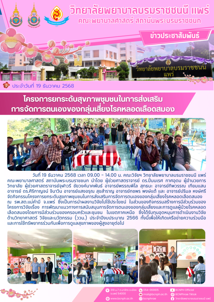 โครงการยกระดับสุขภาพชุมชนในการส่งเสริมการจัดการตนเองของกลุ่มเสี่ยงไรคหลอดเลือดสมอง